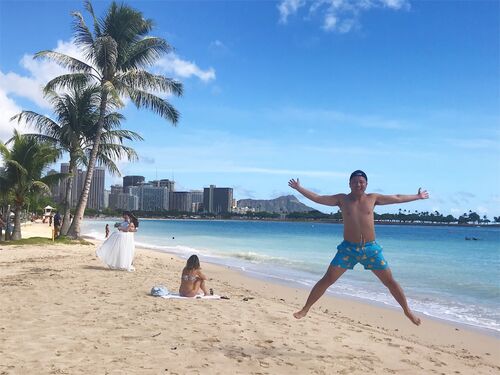 Alohaハワイに着きました! 今回は大学の友達の結婚式に参列!初めてのハワイでの結婚式!結婚式は明日なので、今日は友達とビーチでゆっくりして、式用のアロハシャツ買って、のんびり過ごす予定です!もしかして体力が有り余ってたら……夜はクラブに繰り出…